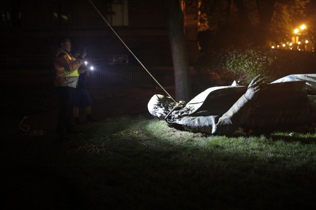 The statue has been in storage for five years, after rioters tore it down using rope, and then vandalized it with spray paint, and then set it on fire.Â